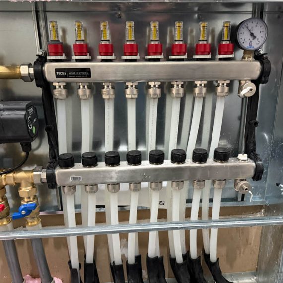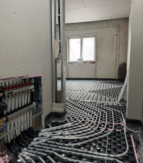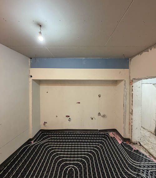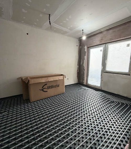 A fost turnată o șapă nouă cu sistem de încălzire în pardoseală, oferind confort termic superior și distribuție uniformă a căldurii. Sistemul este completat de calorifere acolo unde este necesar, iar centrala termică a fost înlocuită cu un model modern, eficient energetic.